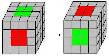 | B) Cambiar dos centros opuestos. Se colocan en la capa superior y en la inferior. |