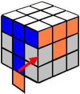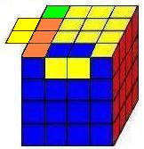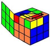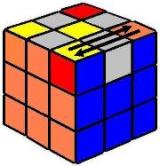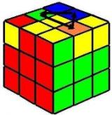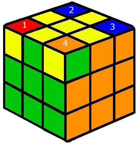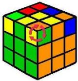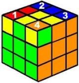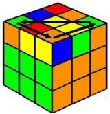 | Este último movimiento, a pesar de su simplicidad, es el más delicado. Hay que repetir el proceso varias veces para el mismo vértice. Una vez colocado el primero el cubo se desordena totalmente, giramos la capa superior para colocar cada vértice delante y a la derecha (posición del 4). Siempre hay que girar al menos 2 vértices. El cubo no se debe girar, solo la capa superior. El cubo quedará terminado. |