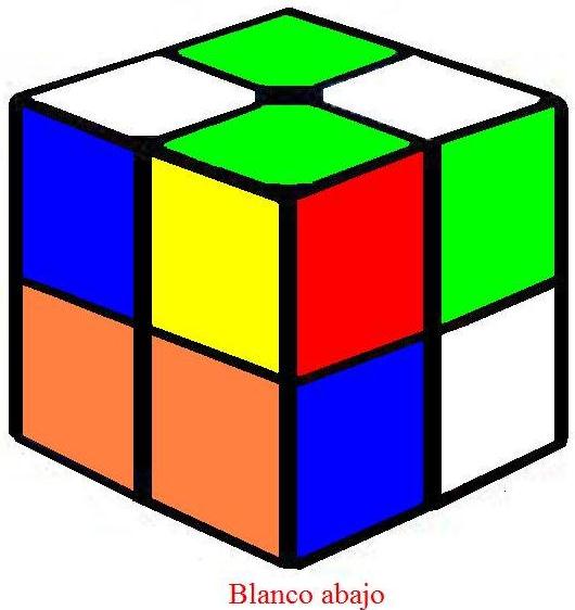 La posición inicial del cubo que utilizo y en el que basaré los dos métodos de resolución tiene la siguiente configuración: Caras laterales de izquierda a derecha: Rojo, Azul, Naranja y Verde. Cara superior Blanco, Cara inferior Amarillo. |