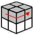 La forma más sencilla es la del caso 1 llevando los vértices a girar a la derecha. Podemos mover el cubo si es necesario para que dos de sus caras (colocadas siempre a la derecha) tengan el mismo color |